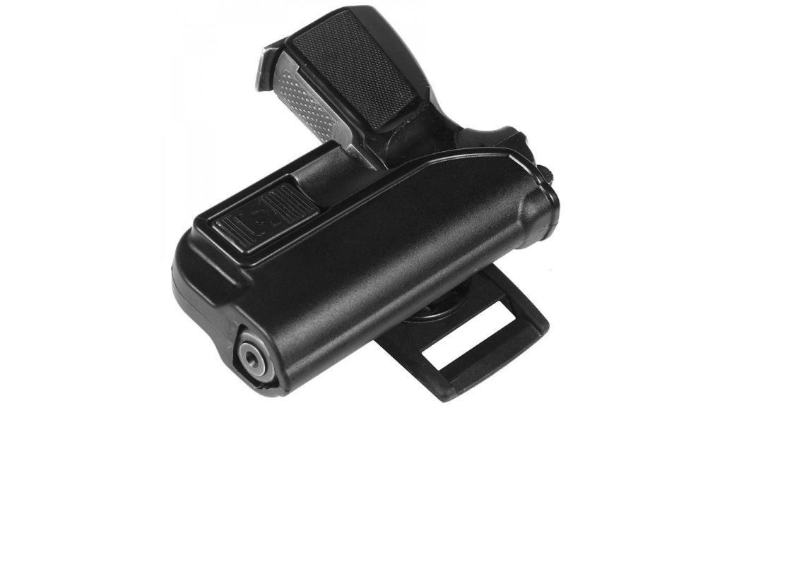 Крепление кобуры рассчитано на ремень 50 миллиметров, и позволяет регулировать угол наклона в произвольном положении.