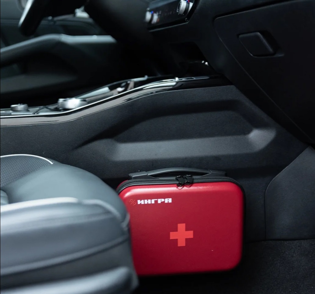 Пластиковый кейс аптечки "ИНГРА" можно установить на любую поверхность, в частности в автомобиле, с помощью крепления на липкой клеевой основе, которое идет в комплекте.