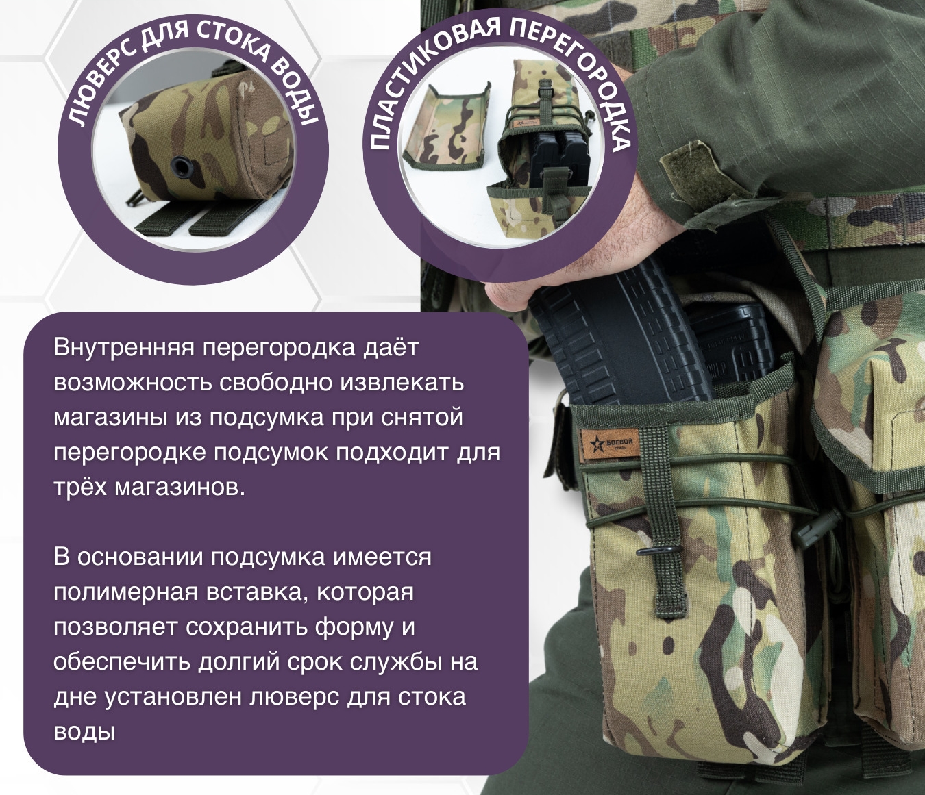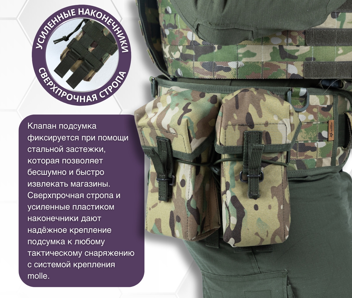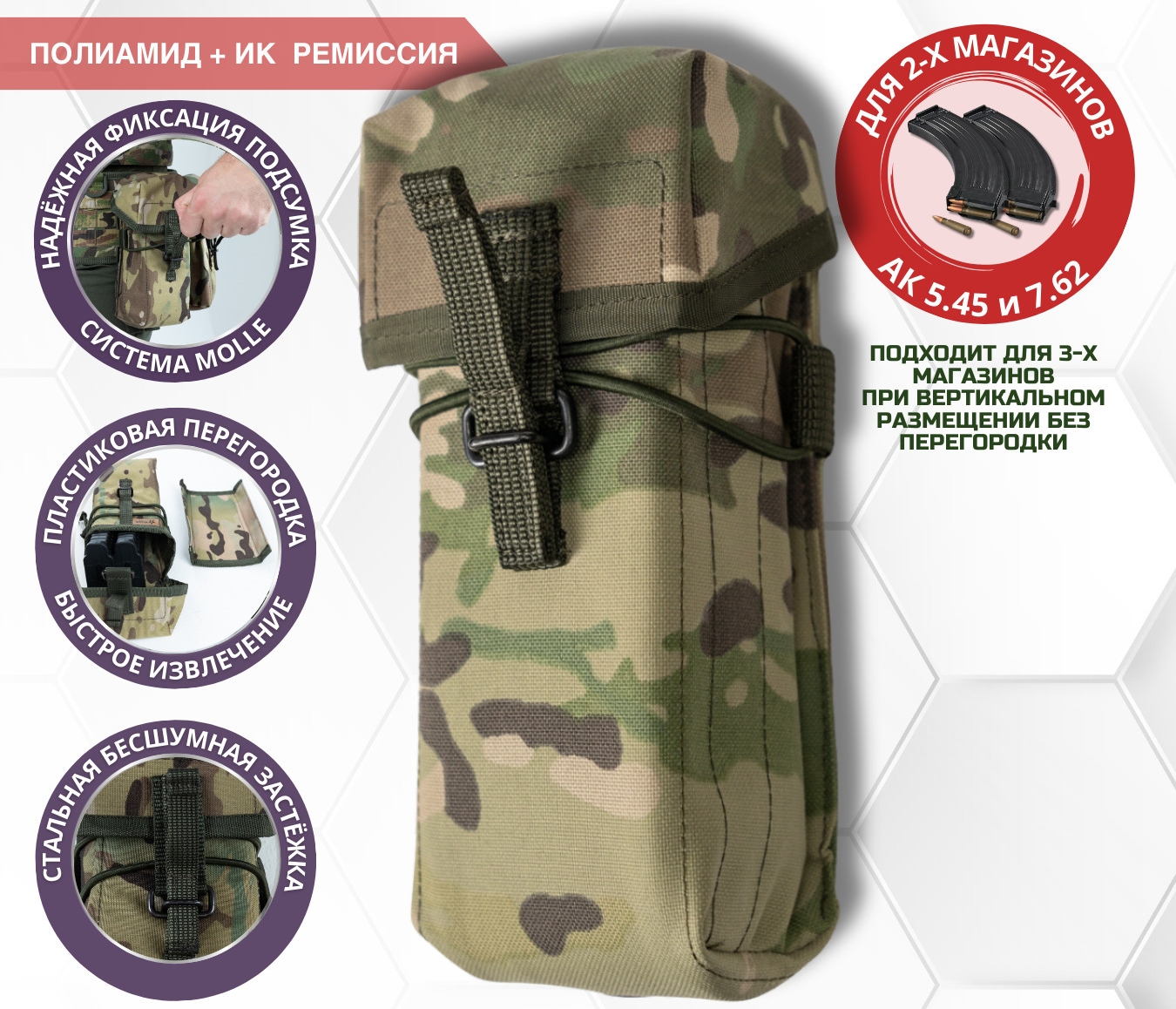 2404 Подсумок закрытый тактический для двух (трех) магазинов АК мультикам (БС)