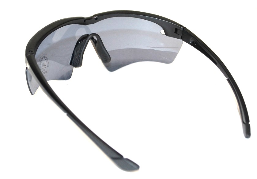 В комплекте очки, плотный футляр для очков, 2 (две) дополнительные пары сменных линз, ремешок-резинка для очков, микрофибровая салфетка.