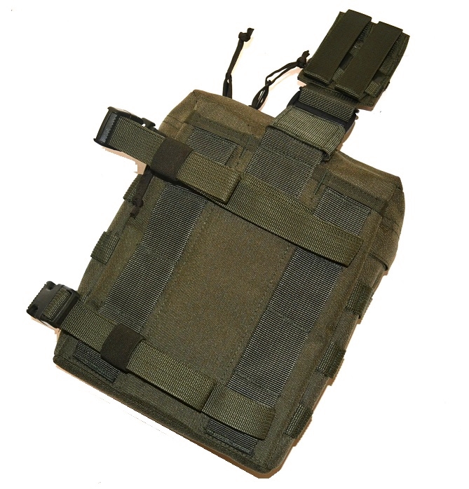 • На тыльной стороне подсумка имеется плоский карман для размещения ножа (штыка-ножа).