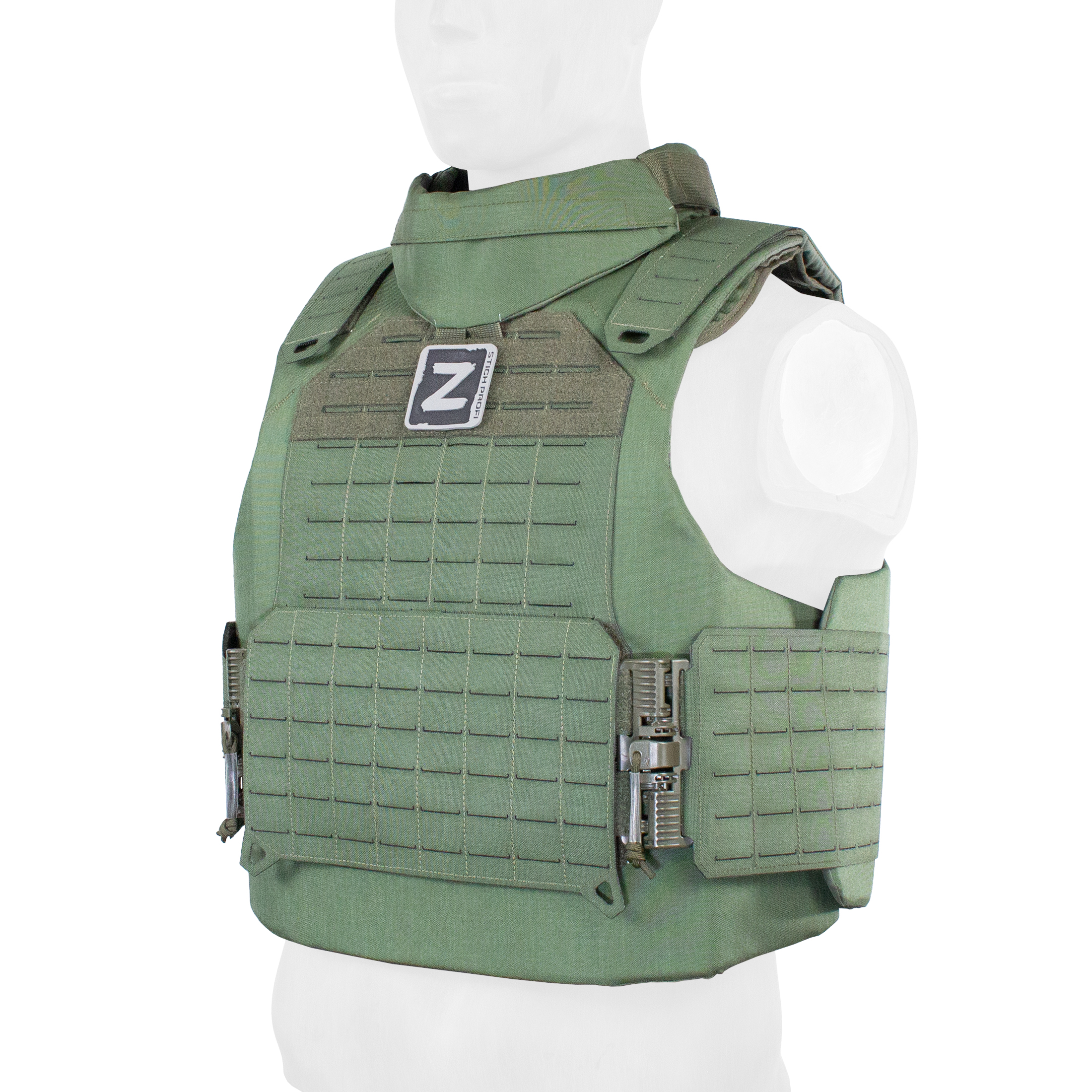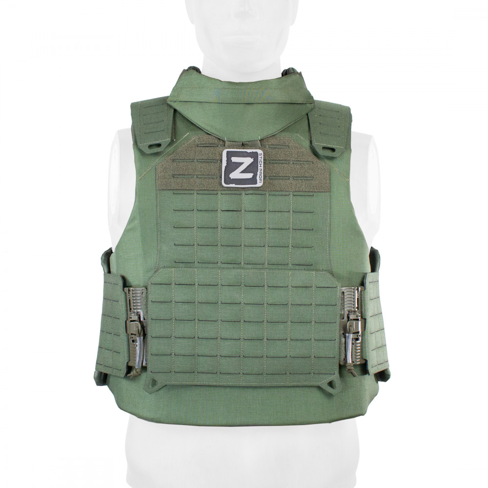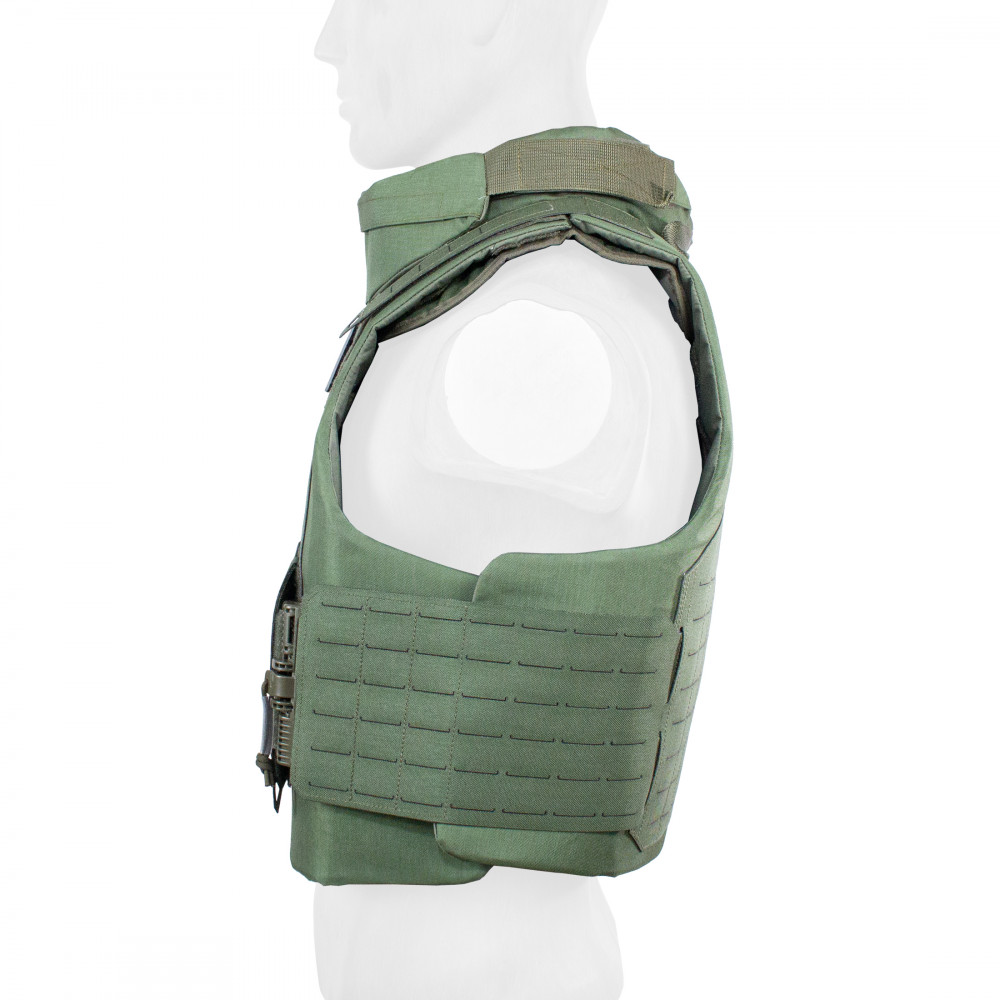 Баллистический функционал жилета может быть расширен путем установки дополнительного снаряжения, такого как напашник и наплечники (докупаются отдельно).