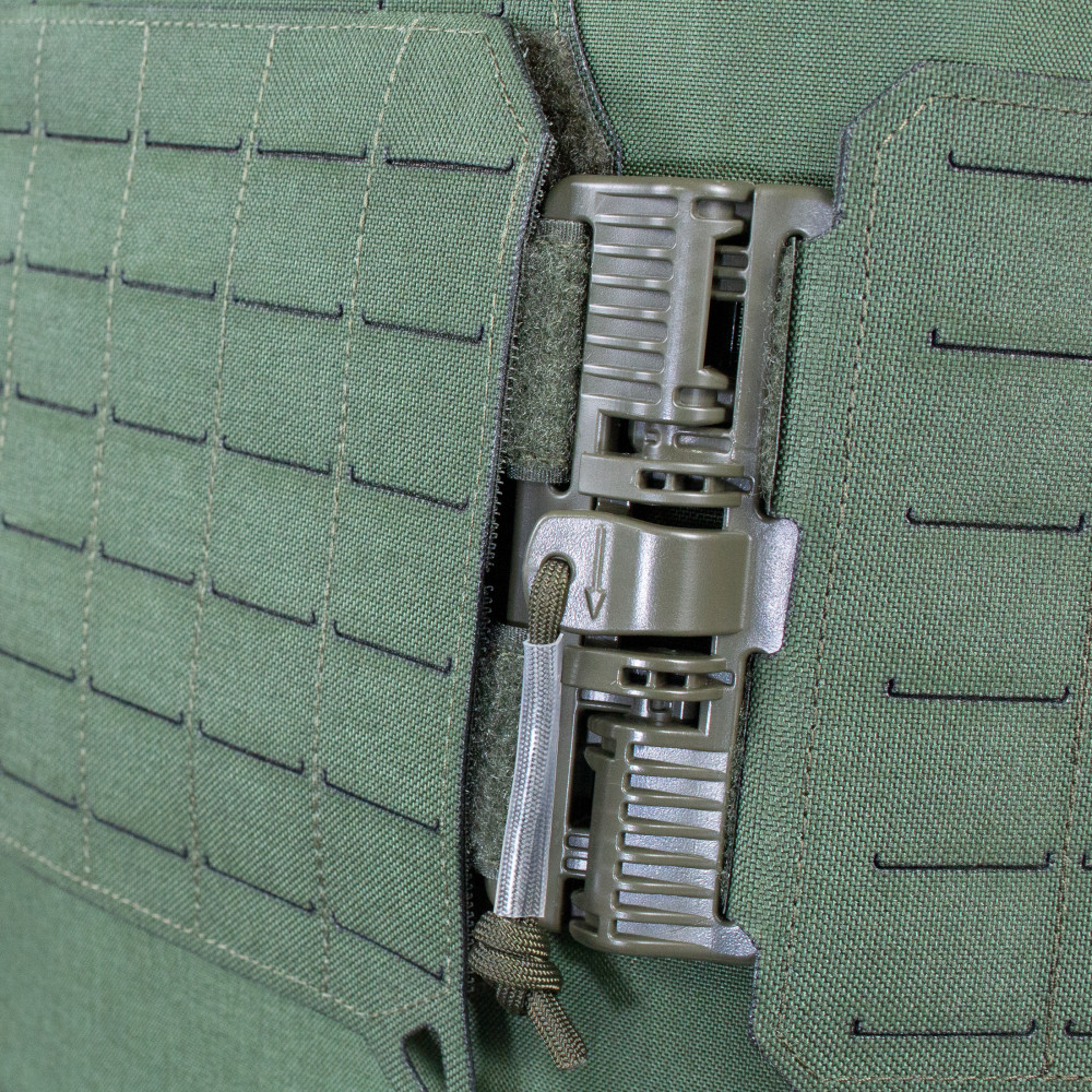 Большая часть поверхности жилета представляет из себя платформу molle-minus, которая позволяет разместить на нем дополнительные подсумки и снаряжение.
