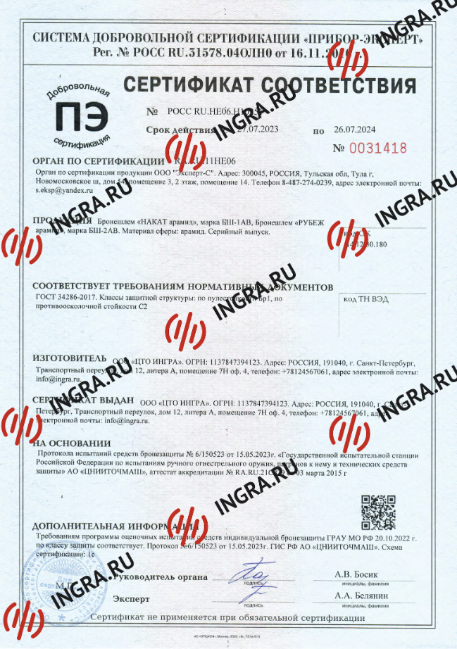 Сертификат соответствия: №РОСС RU.HE06.H10251