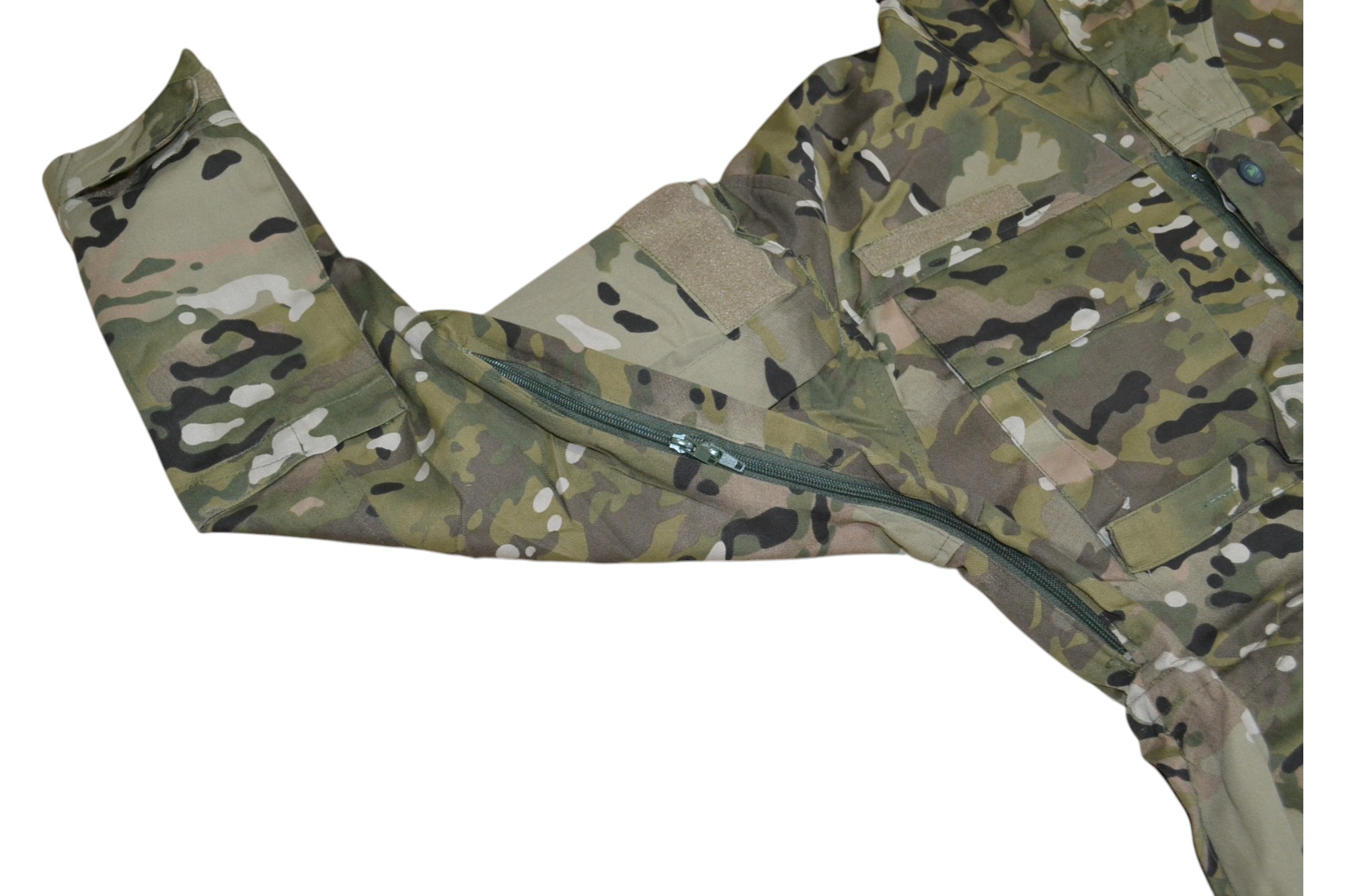 На рукавах куртки есть боковые карманы на молнии, поверх карманов также есть велкро для крепления патчей.