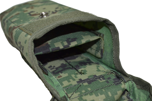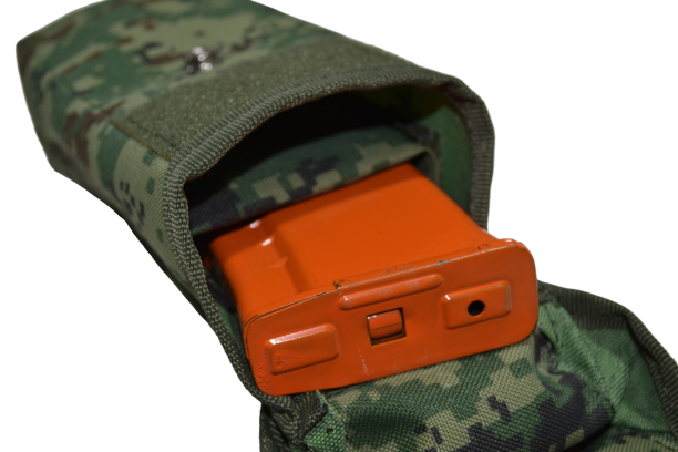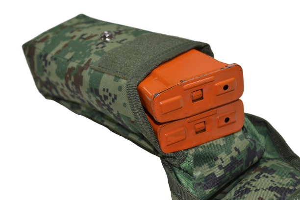 Для исключения возможности соударения магазинов между собой подсумок оснащен съемной перегородкой с демпфером.