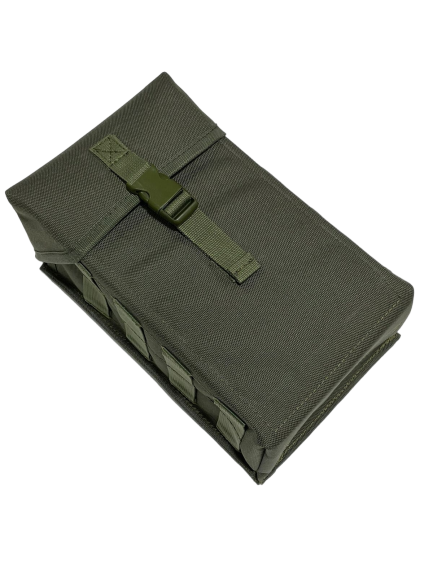 Для исключения попадания грязи, песка и т.п. подсумок имеет объемный клапан, закрывающийся на быстроразъемную пряжку "фастекс" и текстильную застежку.