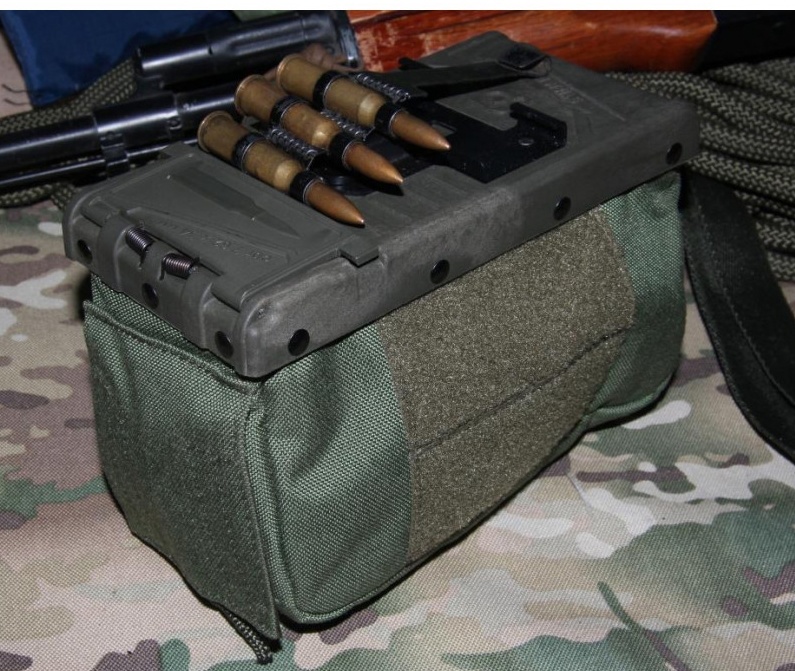 Это отличный вариант, позволяющий заменить тяжёлые металлические штатные коробы к пулемёту Калашникова и его модификациям. Лёгкий и гибкий, выполненный из прочного синтетического материала, он отлично подходит бойцу-пулемётчику, улучшая и расширяя его возможности и потенциал на поле боя.