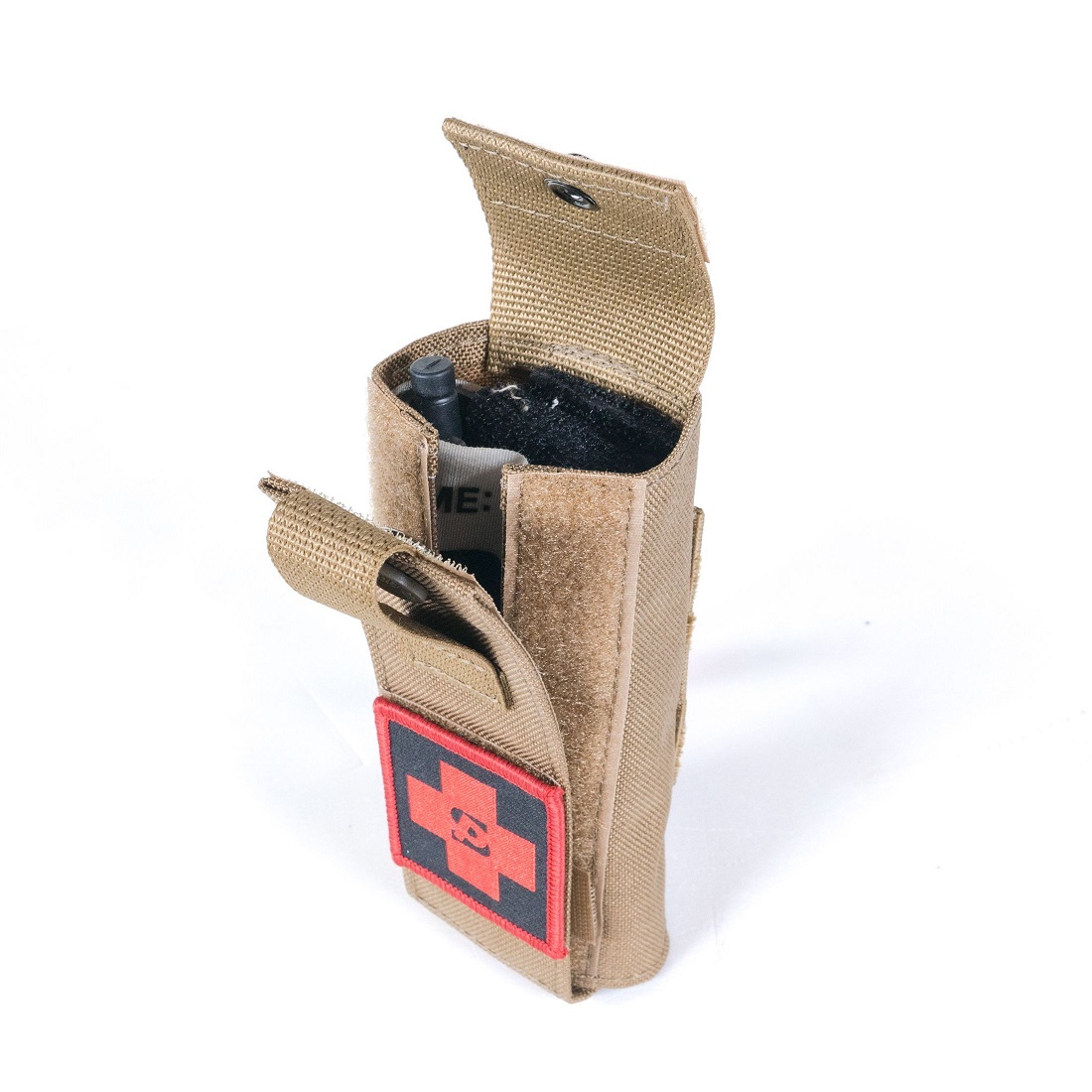В отношении жгутов предельно важными являются факторы обеспечения быстрого доступа к ним (от быстроты доступа зависит быстрота остановки кровотечения, а значит – возможно, сохранение жизни), а также сохранение эксплуатационных качеств на должном уровне без их потери. Именно поэтому предельно логичным является полное неприятие возможности хранения основного жгута (по понятным причинам) в медицинском подсумке или внешнем открытом держателе, не говоря уже о фиксации жгутов на снаряжении пользователя при помощи разнообразных крепежей. Принимая это во внимание, нами было принято решение разработать отдельный подсумок под жгуты.