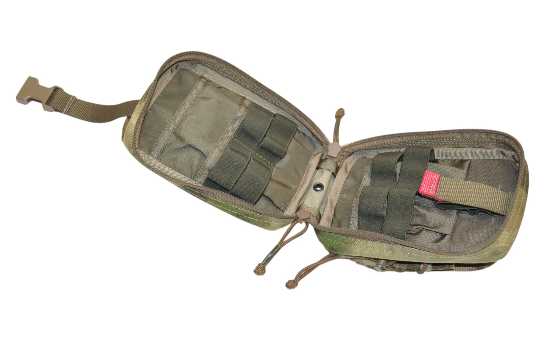 -Конструкция подсумка позволяет раскрыть его на 180°, при этом карманы ориентированы вверх и их содержимое не только не выпадает, но и удобно расположено для использования